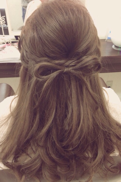 こちらは定番のハーフアップに、リボンを組み合わせました♪